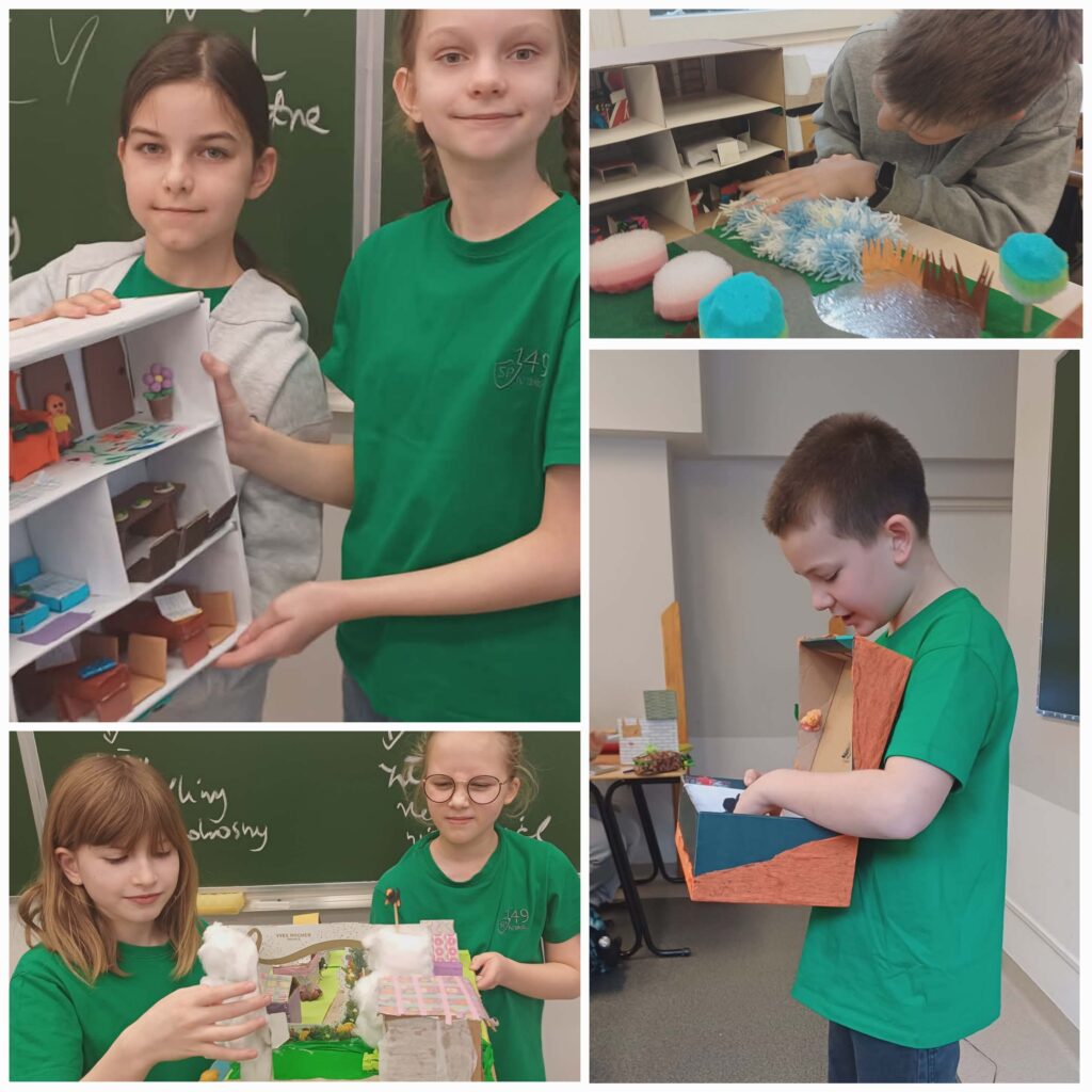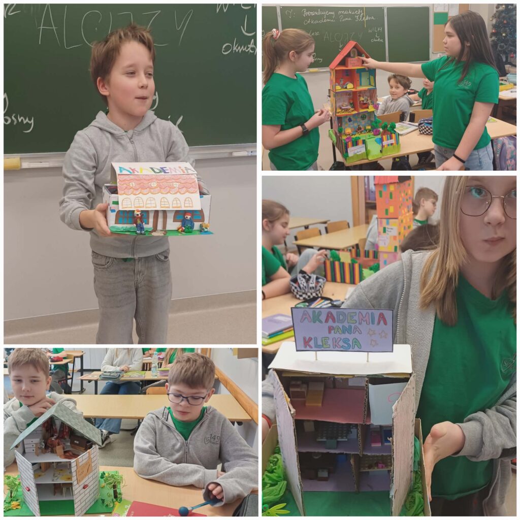 Uczniowie klasy 4a wykonali w domu niezwykłe makiety przedstawiające Akademię Pana Kleksa. Inspiracją do ich powstania była lektura Jana Brzechwy, która rozbudziła wyobraźnię młodych artystów. Każda praca była oryginalna i niepowtarzalna. Czwartoklasiści wykazali się dużą kreatywnością, sięgając po różnorodne materiały i ciekawe rozwiązania.