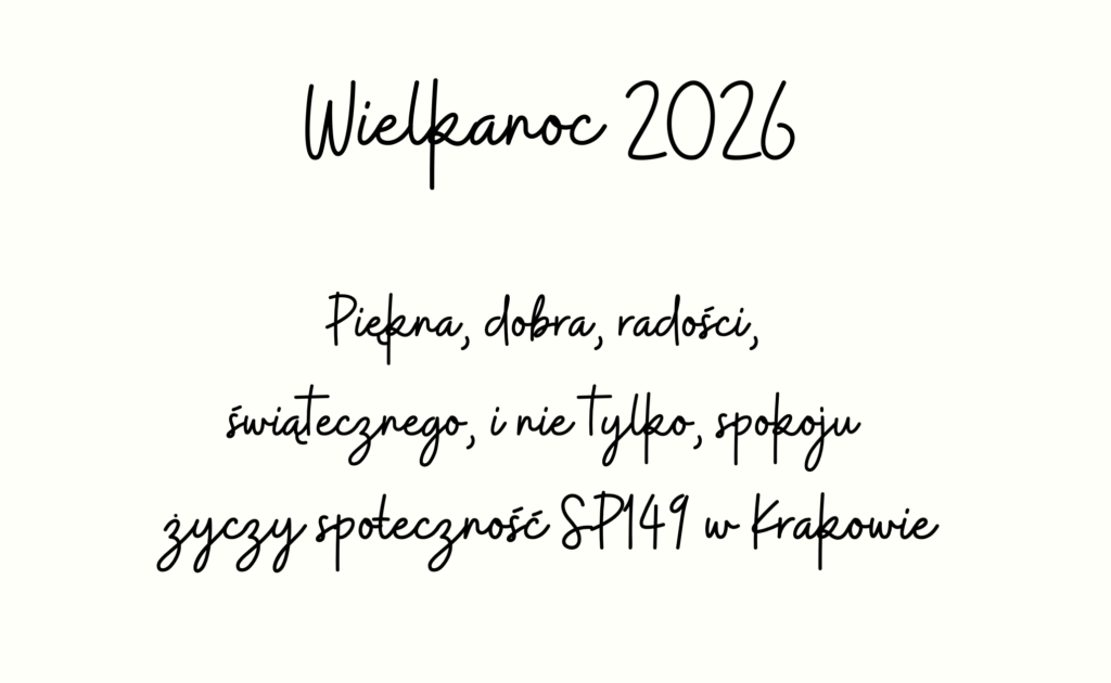 Życzenia Świąteczne 30 marca, 2026 Praca Zofii Kurnik, uczennicy SP149 w Krakowie (wyróżnienie w Międzynarodowym Konkursie Plastycznym “Ogród piękna, dobra i radości” zorganizowanym przez Pałac Młodzieży w Nowym Sączu).